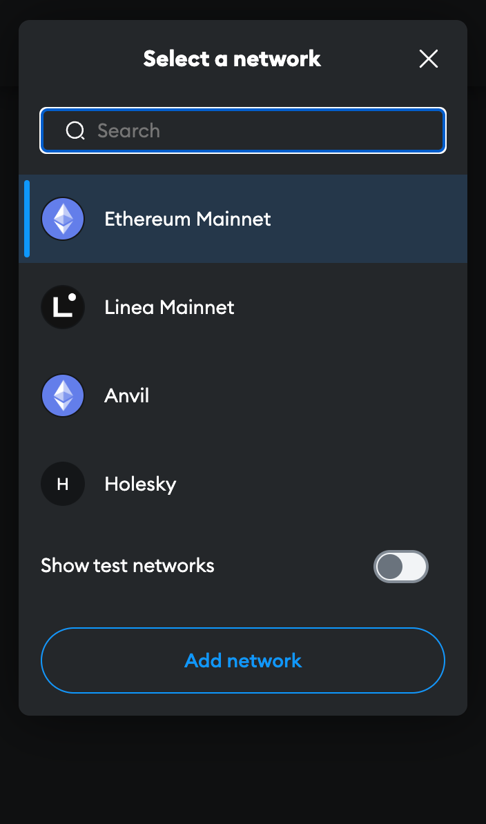 Click on the top left dropdown & click the "Add Network" button.