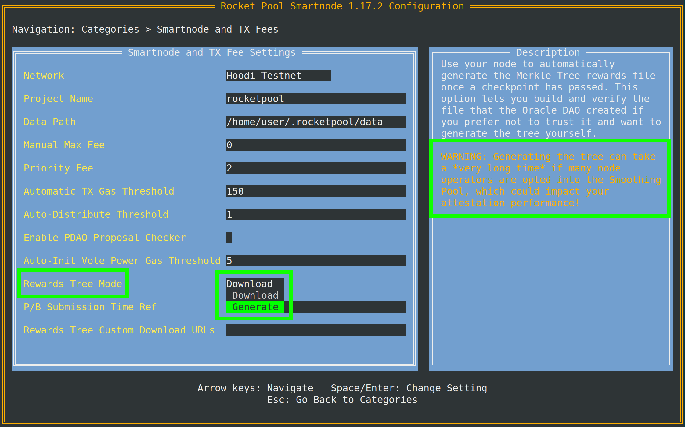 terminate, t Deletes all of the Rocket Pool Docker containers and volumes, including your ETH1 and ETH2 chain data and your Prometheus database (if metrics are enabled). Also removes your entire `.rocketpool` configuration folder, including your wallet, password, and validator keys. Only use this if you are cleaning up the Smart Node and want to start over!