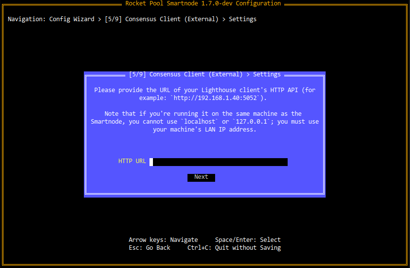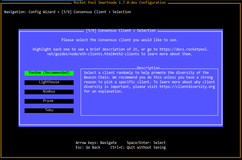 If you want the Smartnode to manage a Consensus client for you, the next screen will ask you to pick a client: