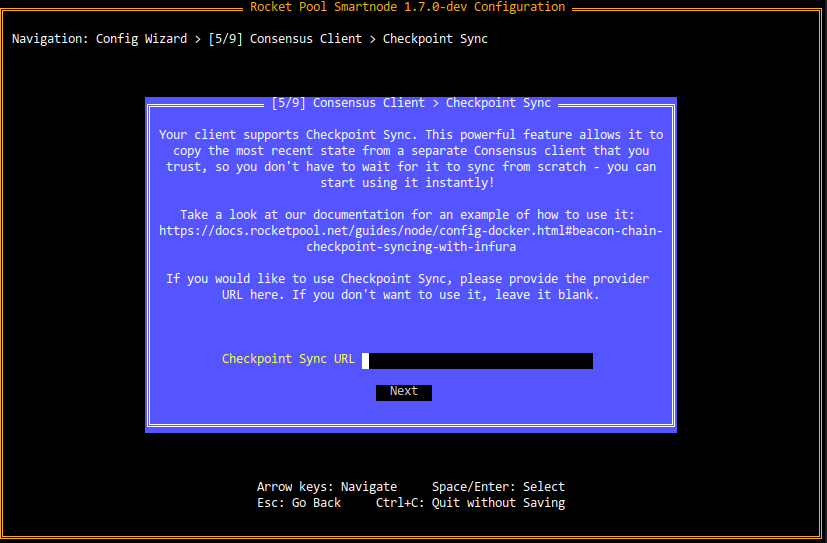 Choose a relevant checkpoint sync url and paste in the terminal during rocketpool service config when it prompts you for a Checkpoint Sync Provider.