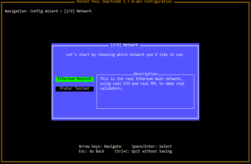 If you're ready to create a real Rocket Pool node on Mainnet to earn real rewards, select Mainnet.