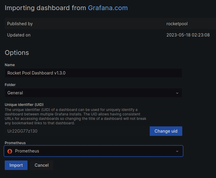 Importing the Rocket Pool Dashboard