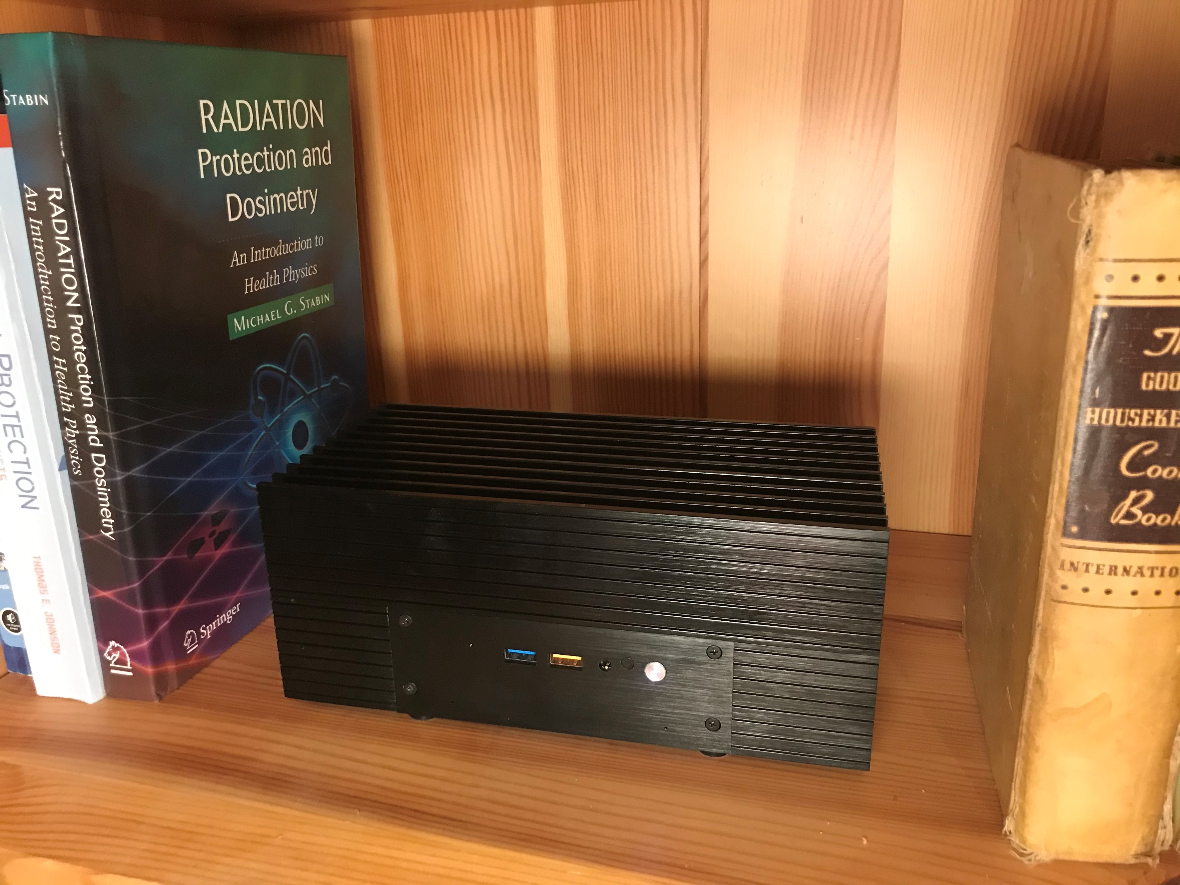 - I upgraded to a fan-less (passively cooled) case, so the NUC is absolutely silent (0 dB) as I’m leaving it my home office (a stock NUC is near silent already).