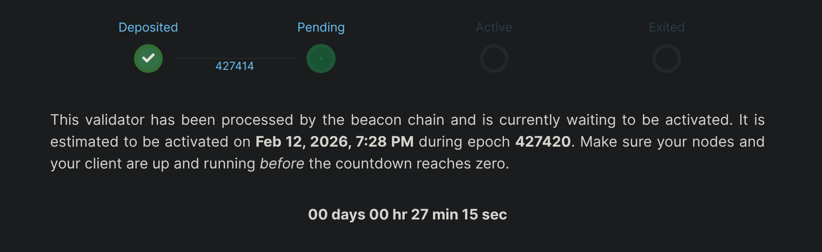 that your initialized validator smoothly progresses to staking without incurring any penalties.